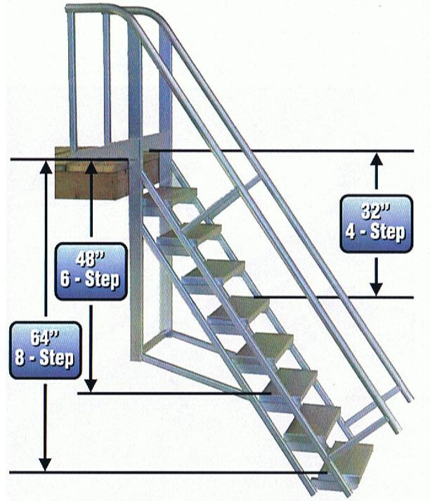 You don’t have to struggle on a flimsy ladder anymore. Welded aluminum handrails, slip-resistant treading, and secure, easy mounting, make these stairs simply the best!